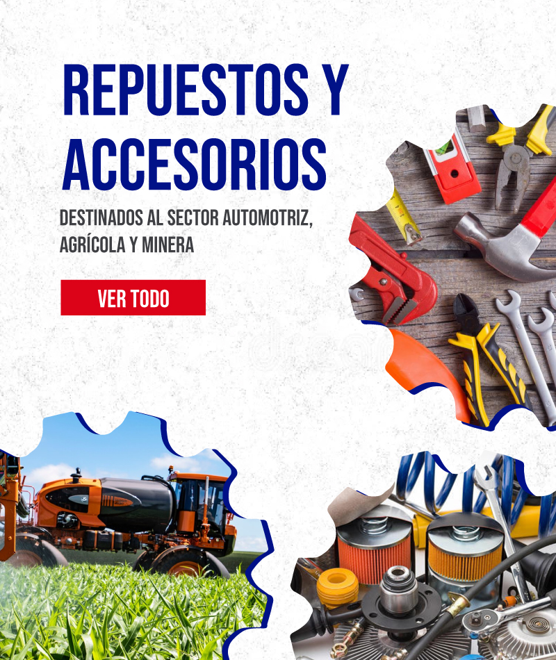 Somos una empresa proveedora de repuestos y accesorios para distintos equipos, destinados al sector automotriz, agrícola y minera, ofreciendo un amplio portafolio de las más prestigiosas marcas.